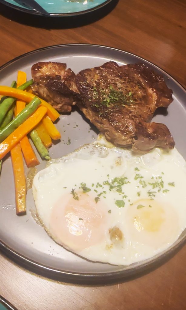 - The Signature Ribeye Steak (₱550) was a bit small, though not surprising considering the asking price. Ordered MR, it was properly done, with the meat still juicy. You don’t get a lot of accompanying veggies; though the eggs we ordered in place of the potatoes were well done.