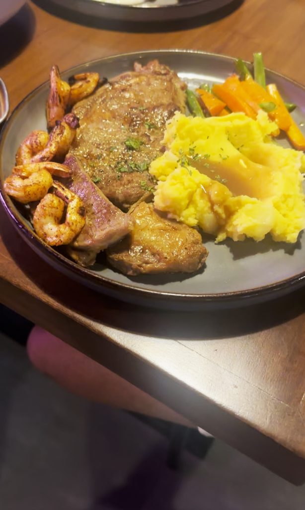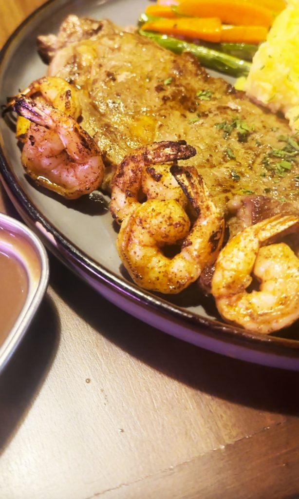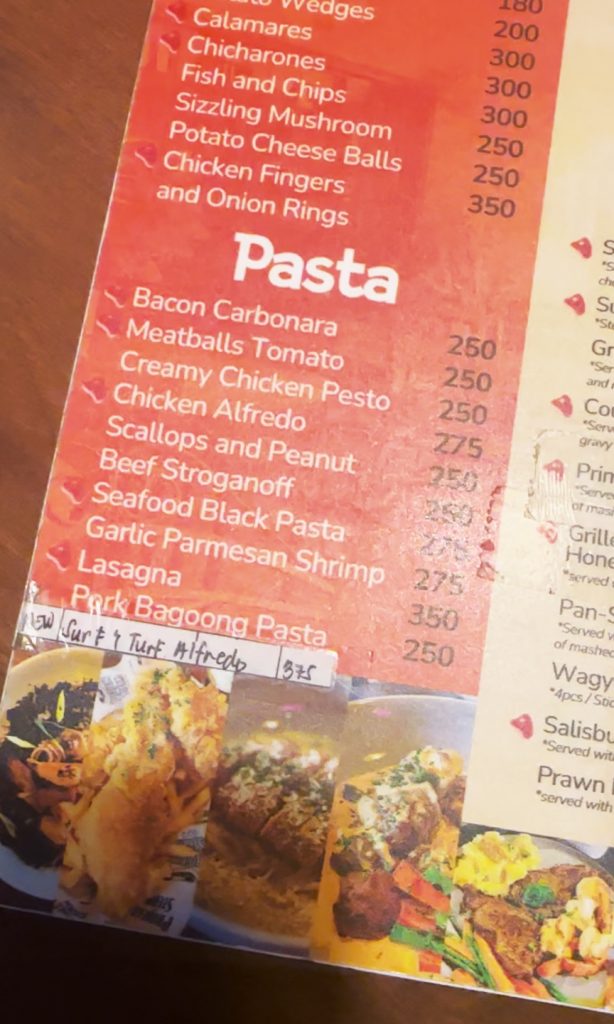- The Surf and Turf (₱650) was basically a Ribeye Steak… with grilled shrimps. For both steaks, if there’s a major comment, it’s the lack of seasoning. Yeah, you can just add salt and pepper; but it tastes different when meat is seasoned before or during cooking since nanunuot ang lasa. The mashed potato was too margarine-y, and so was so-so. The shrimps were good even if they were somewhat small.