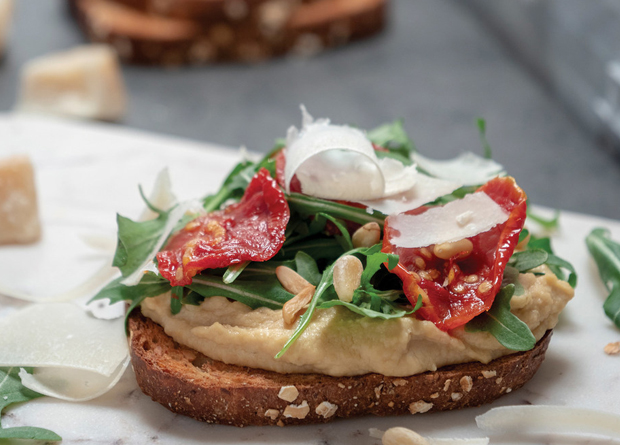 Hummus Toast with Sun-dried Tomatoes and Parmesan
