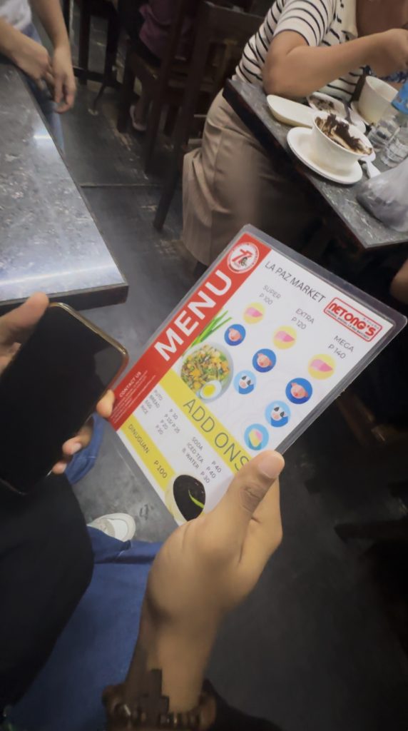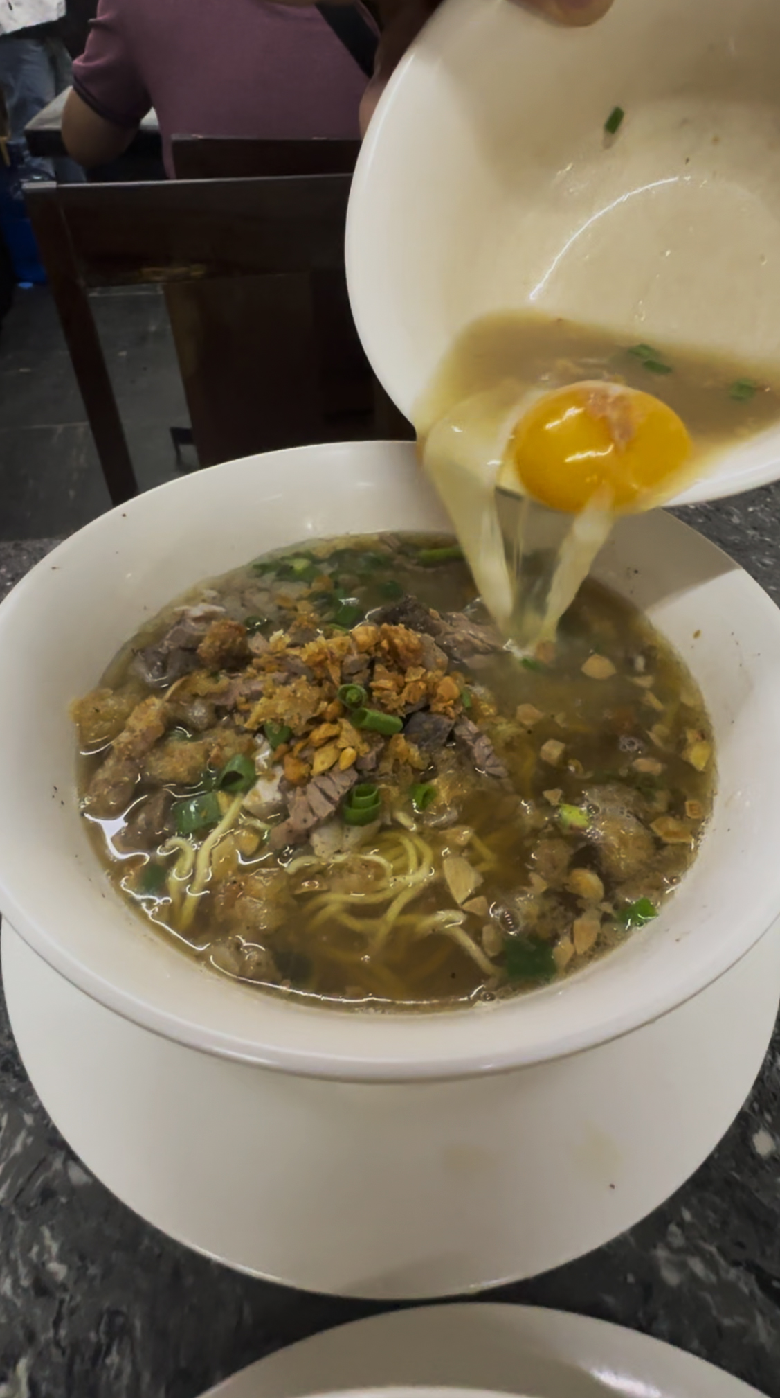 - The place only really sells batchoy, and there are three variants: the ₱100 Super, ₱120 Extra, and ₱140 Mega. The differences are the sahog. We wanted to order the Mega, but ubos na. So we got the Extra, which had pork, beef, liver, entrails, crunchy garlic, chicharon, and so on. For ₱20, we also added eggs (raw, added into the broth). And yep… this one’s good, with the flavors mixing properly. Matamis na garlicky na salty, just as batchoy should taste.