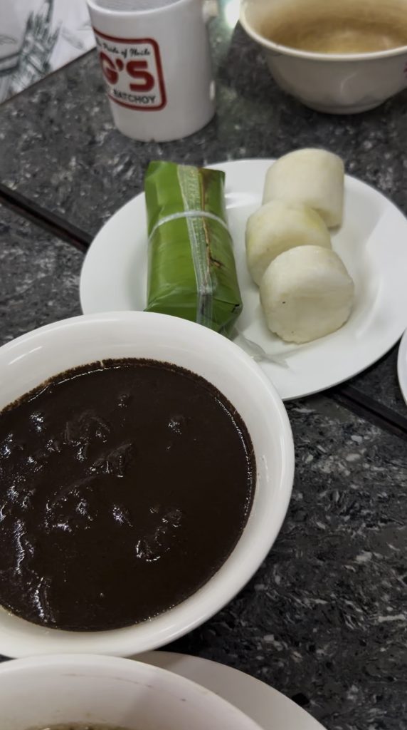 - The ₱100 dinuguan (pork blood stew) was actually good, not malansa (fishy or off-putting) since it’s properly cooked and flavored. Maasim-asim due to the vinegar used, though not overpowering, so that it could also be okay as ulam (viand).