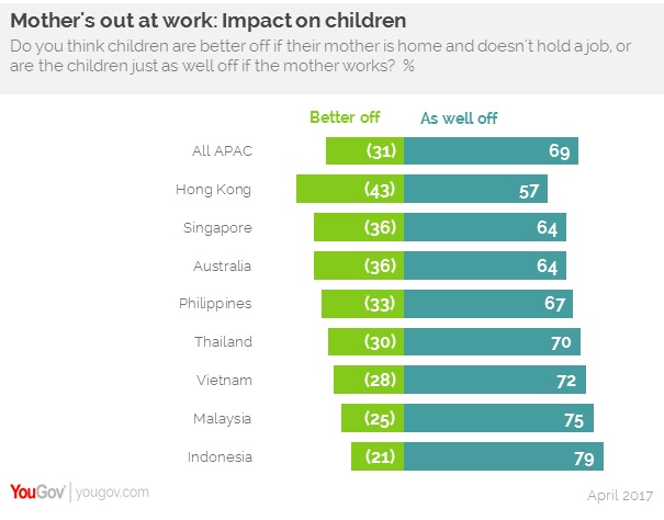 Seven in ten of APAC respondents think children are better off if their mothers are at home